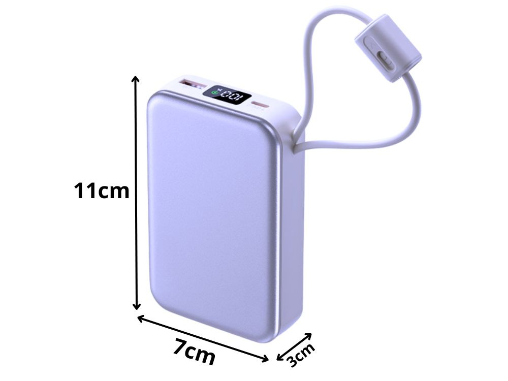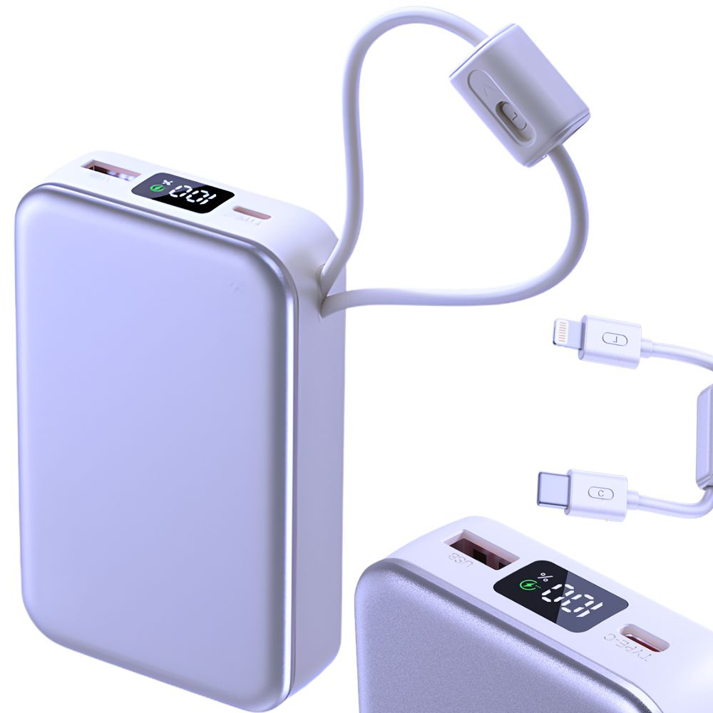 Компактная конструкция и практичный встроенный кабель Lightning и USB-C делают этот внешний аккумулятор идеальным решением для повседневного использования, путешествий, работы или учебы.