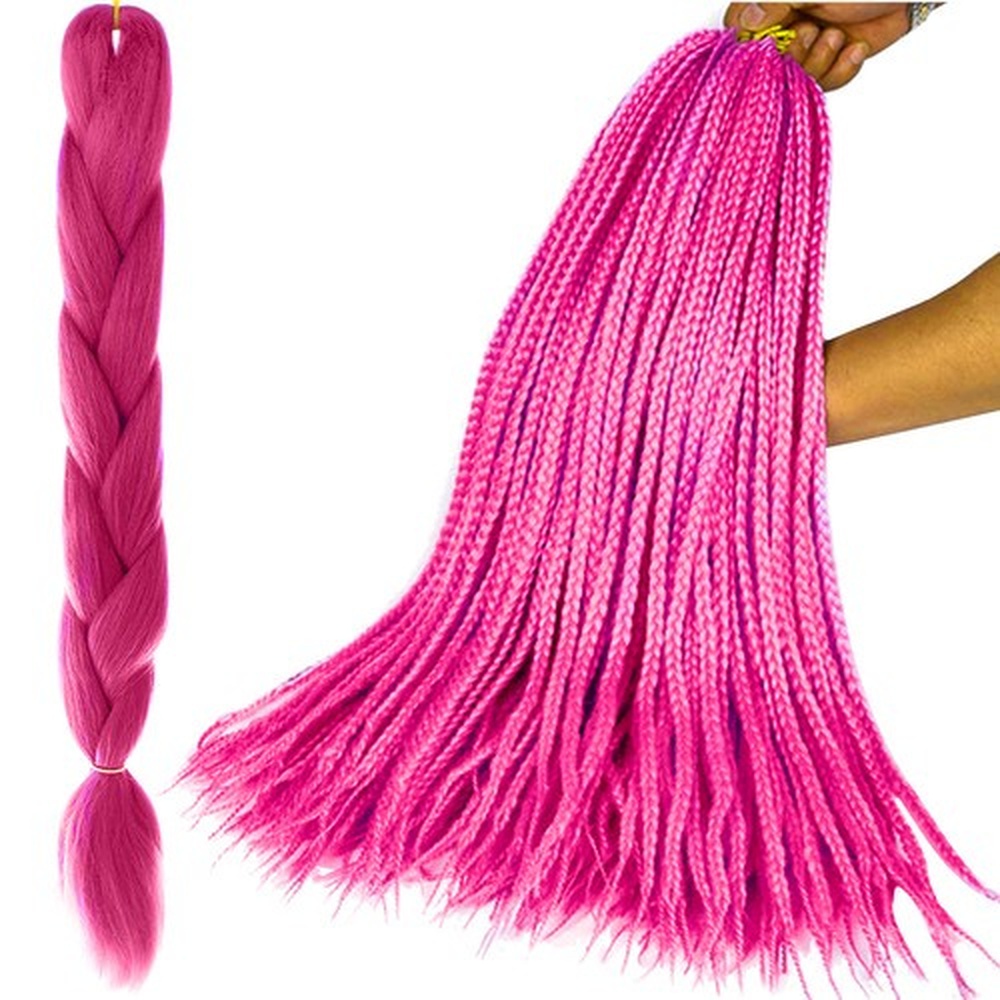 Синтетические волосы, коса, тесьма, цветная, розовая, 60 см