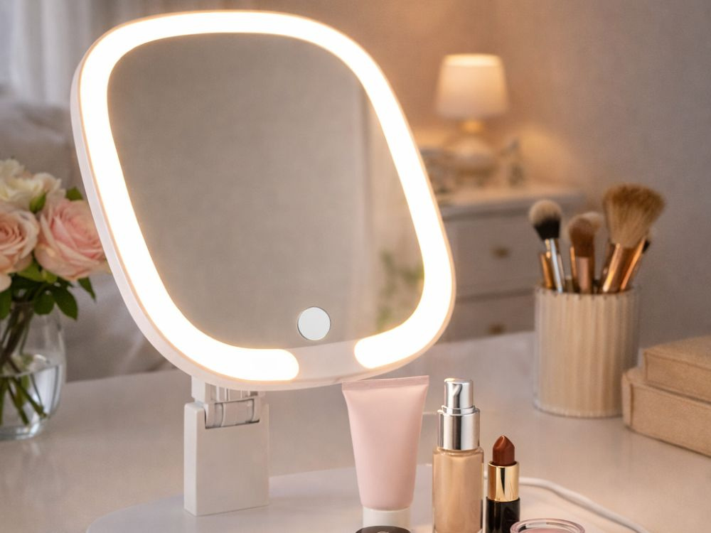 КОСМЕТИЧЕСКОЕ ЗЕРКАЛО ДЛЯ МАКИЯЖА С LED-ПОДСВЕТКОЙ, СКЛАДНОЕ, С 3 ЦВЕТАМИ
