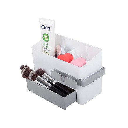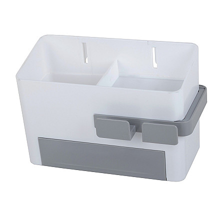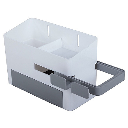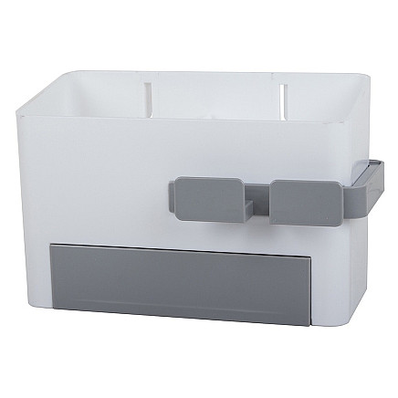 Универсальный органайзер для ванной комнаты - идеальное решение для поддержания порядка в ванной комнате Органайзер имеет контейнер с отделением, ящик и выдвижной держатель для сушилки.