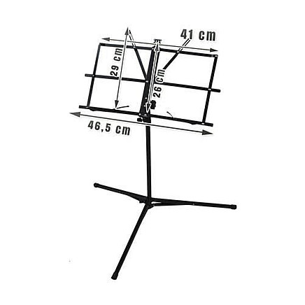 Металлический пюпитр с порошковой покраской. Он имеет трехножку и регулируемую высоту. Рабочий стол складной. Штатив рекомендуется как профессионалам, так и любителям.