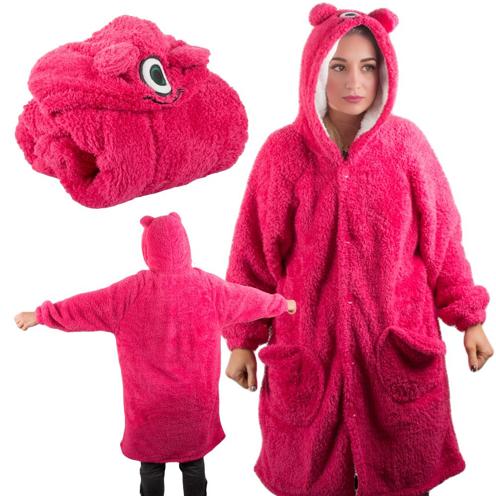 Теплый плед-толстовка, мягкое изделие с функциональностью халата и одеяла одновременно. Изготовленное из теплого материала, оно идеально подходит для холодных дней, окутывая все тело. У нее есть капюшон с одним глазом, что придает толстовке игривый, чудовищный характер.