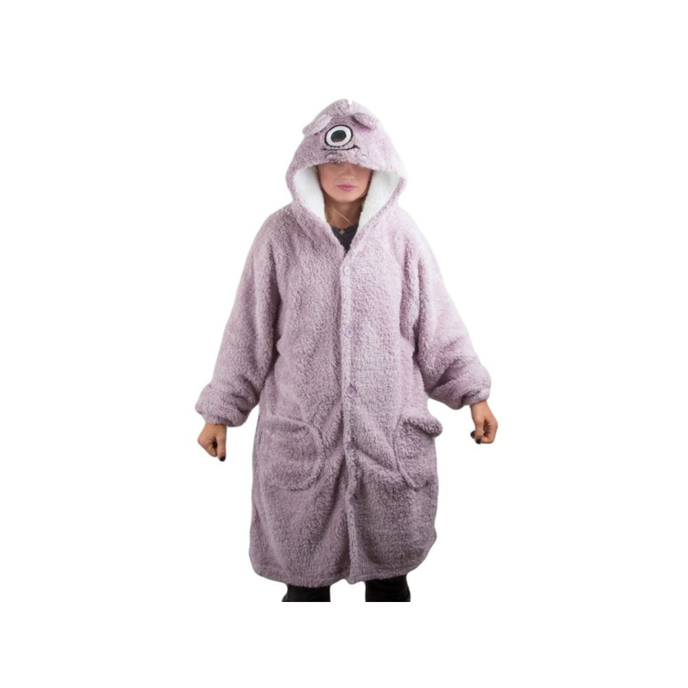 Теплый плед-толстовка, мягкое изделие с функциональностью халата и одеяла одновременно. Изготовленное из теплого материала, оно идеально подходит для холодных дней, окутывая все тело. У нее есть капюшон с одним глазом, что придает толстовке игривый, чудовищный характер.