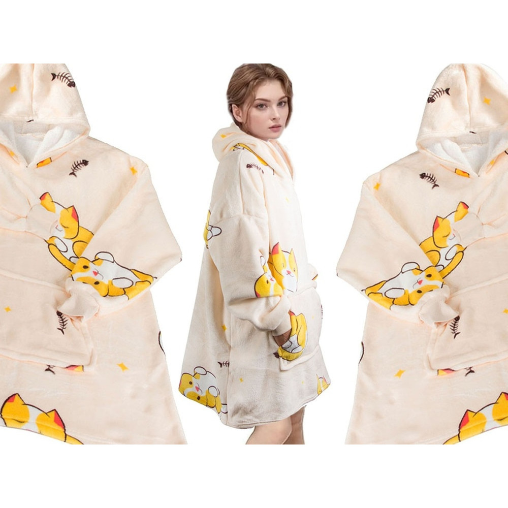 Warm sweatshirt cat blanket oversize xxl 2in1 thick fur soft with hood