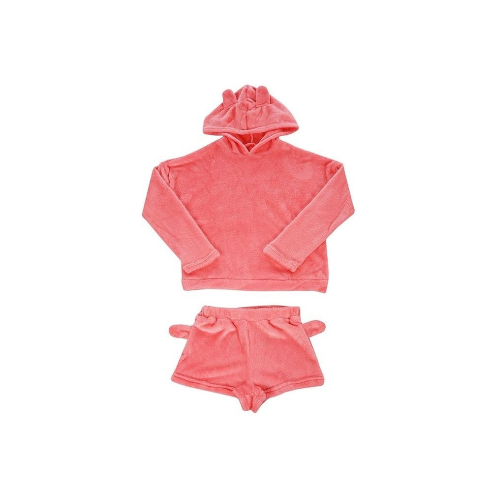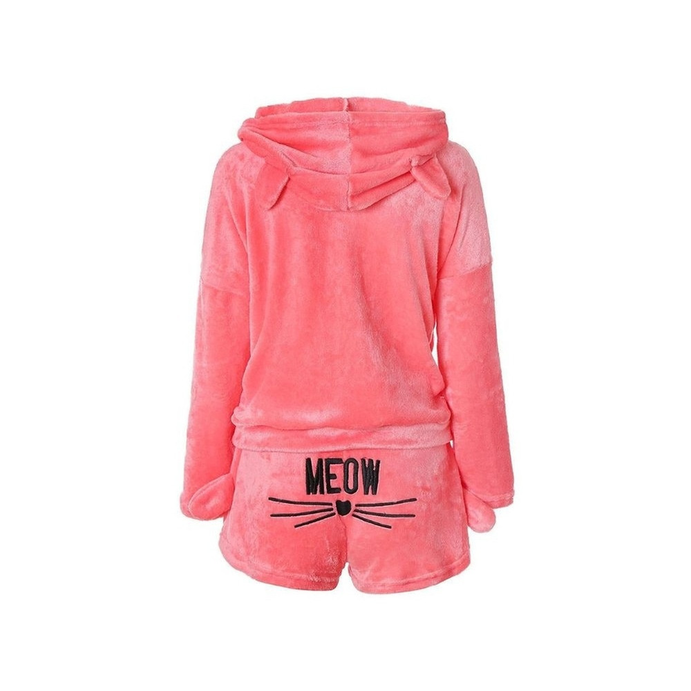 ТЕПЛАЯ ЖЕНСКАЯ ПИЖАМА ИЗ ДВУХ ЧАСТЕЙ С КАПЮШОНОМ МЯГКИЙ ПЛЮШ КОРОТКАЯ L
