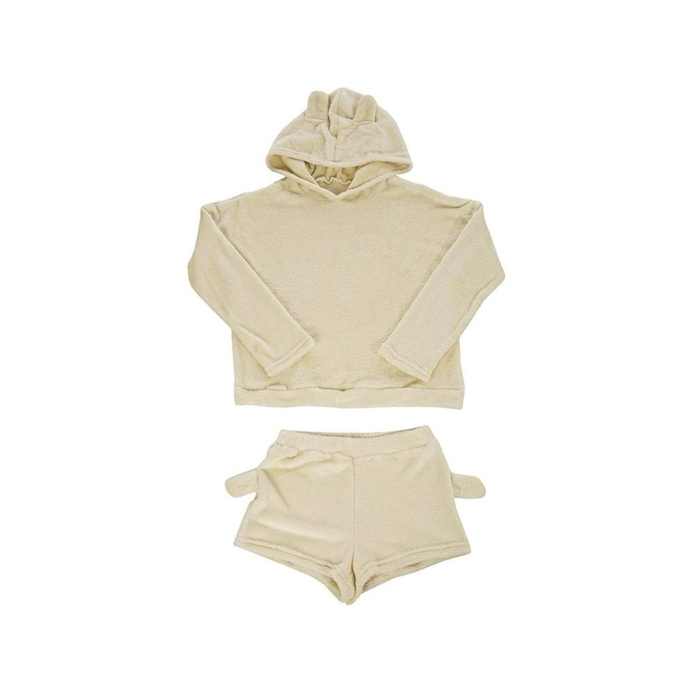 Warm women's pyjamas two-piece with hood soft plush short l