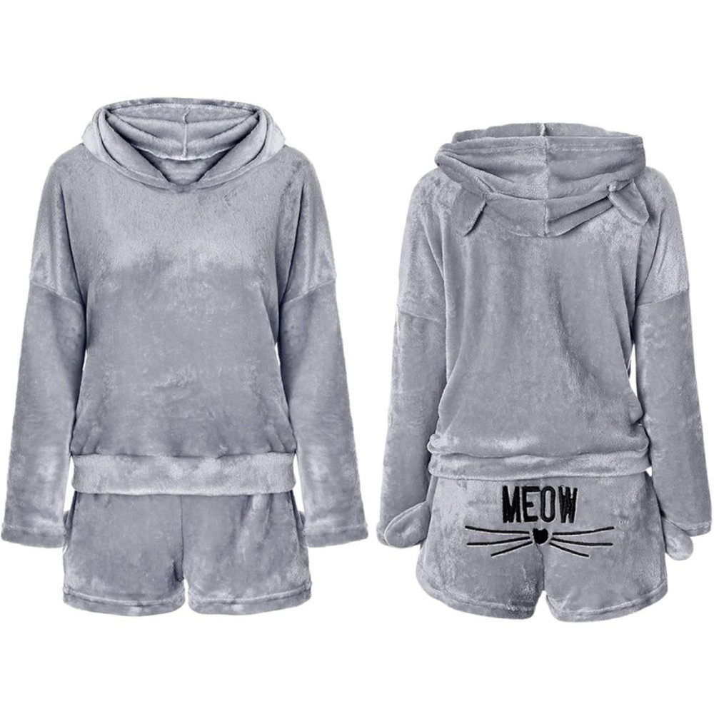 ТЕПЛАЯ ЖЕНСКАЯ ПИЖАМА ИЗ ДВУХ ЧАСТЕЙ С КАПЮШОНОМ ИЗ МЯГКОГО ПЛЮША КОРОТКАЯ M