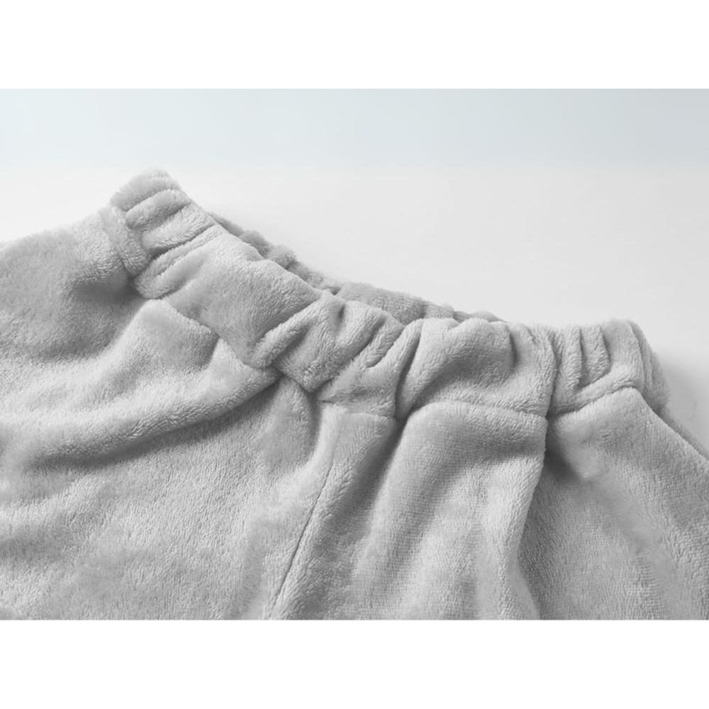 Теплая пижама серого цвета, размер M, состоит из комплекта с длинными рукавами и короткими шортами. Изготовленная из мягкого, приятного на ощупь материала, она обеспечивает комфорт во время сна, особенно в холодные ночи.