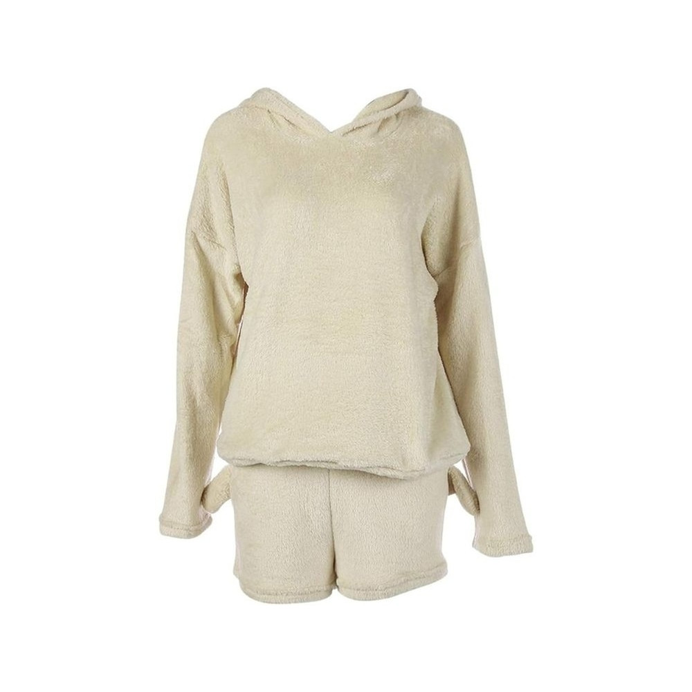 ТЕПЛАЯ ЖЕНСКАЯ ПИЖАМА ИЗ ДВУХ ЧАСТЕЙ С КАПЮШОНОМ МЯГКИЙ ПЛЮШ КОРОТКАЯ M