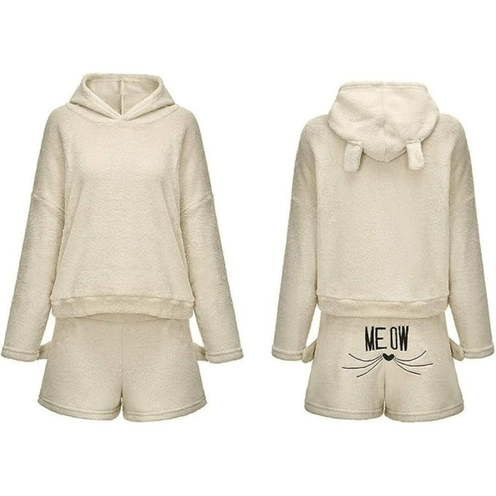 Warm women's pyjamas two-piece with hood soft plush short xl