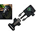 Браслет изготовлен из прочного материала и содержит веревку, лезвие, компас, свисток и кремень. Кроме того, он служит стильным украшением для ношения на запястье.