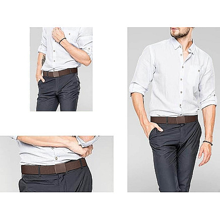 Практичный ремень с пластиковой пряжкой Без металлических деталей.