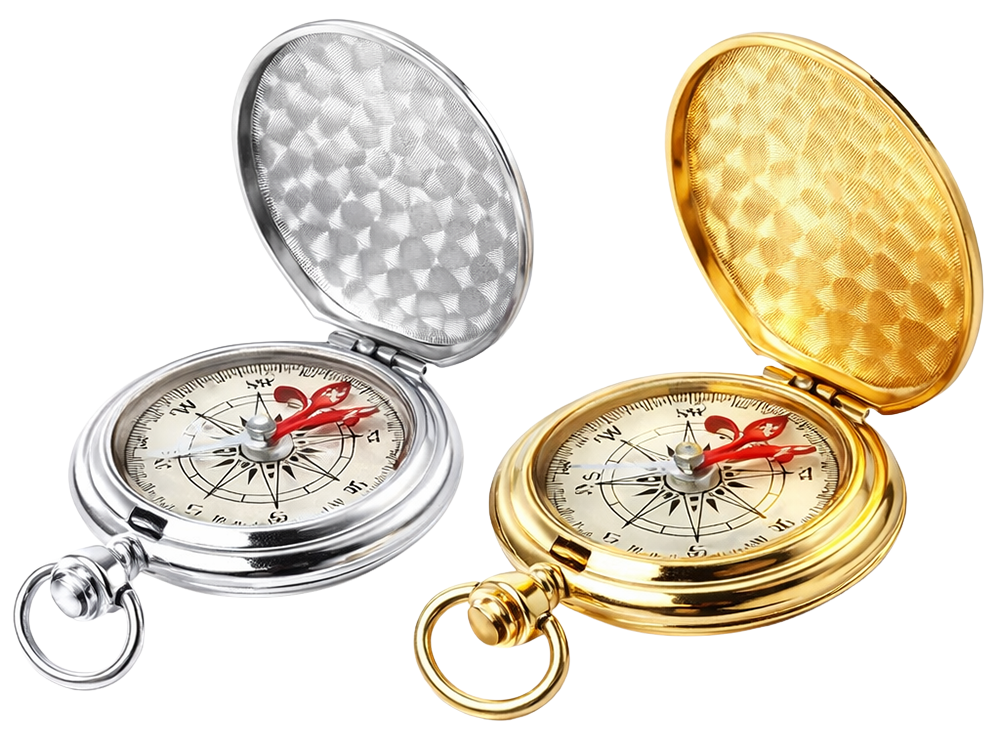 Практичный компас золотистого цвета. Сочетает в себе эстетичный внешний вид и функциональность – идеально подходит для любителей путешествий, выживания и активного отдыха.