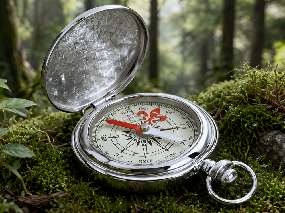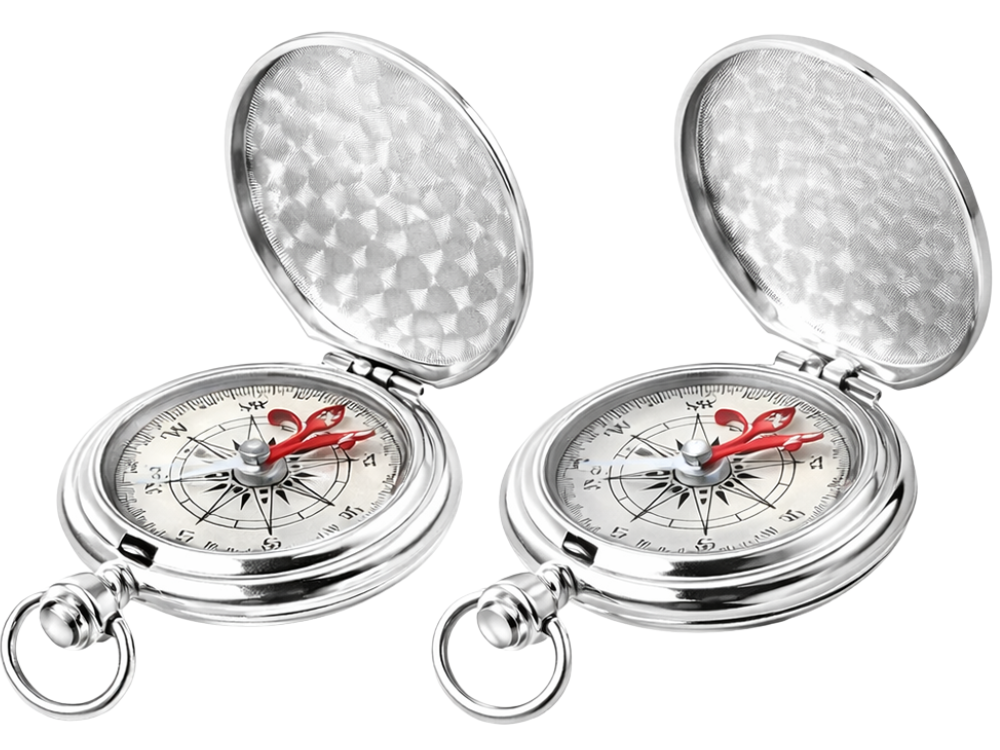 КЛАССИЧЕСКИЙ ТУРИСТИЧЕСКИЙ КАРМАННЫЙ КОМПАС С ЗАКРЫВАЮЩИМСЯ МЕТАЛЛИЧЕСКИМ КОРПУСОМ, СЕРЕБРЯНЫЙ КОМПАКТНАЯ ФОРМА, ПРОФЕССИОНАЛЬНАЯ РАБОТА