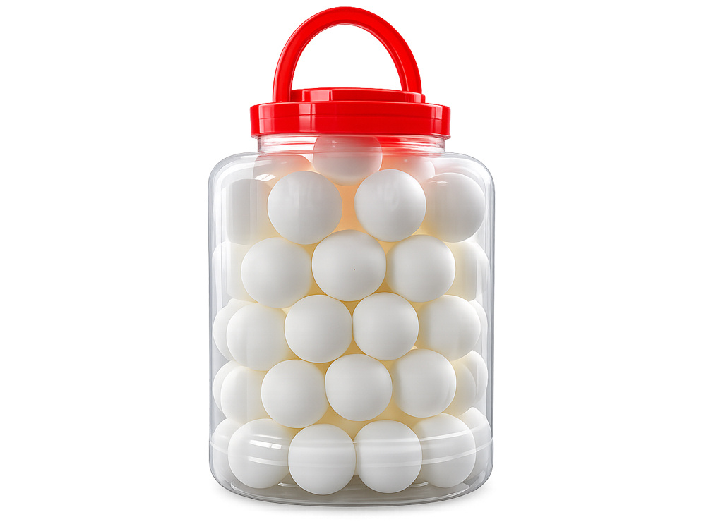 ЦЕЛЫХ 60 ШТУК В ПРАКТИЧНОМ КОНТЕЙНЕРЕВ наборе 60 белых мячей, упакованных в прочный прозрачный контейнер с удобной ручкой.