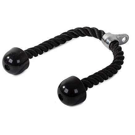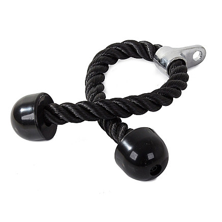 Скакалка для трицепса - этопрочное изделие, изготовленное из плотно сплетенных нейлоновых волокон Канат позволяет выполнять множество комбинаций упражнений. На концах каната установлены резиновые втулки, обеспечивающие надежный хват и безопасность выполняемых упражнений.