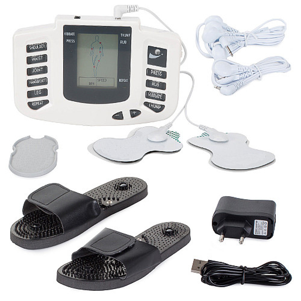 The kit includes a pair of flip-flops that act as electrodes for the feet, so that tired feet can be massaged after an exhausting day's work.