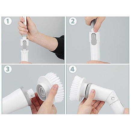 Благодаря шести различным насадкам щетка идеально подходит как для больших поверхностей, так и для узких щелей. Коническая насадка тщательно очистит труднодоступные углы и края, а большая плоская щетка идеально подходит для пола, стен или душевой кабинки В комплект также входит полукруглая щетка для универсального использования - она идеально подходит для чистки кранов и раковин. Для использования щетки не нужно моющее средство - просто окуните ее в воду и можете приступать к уборке.