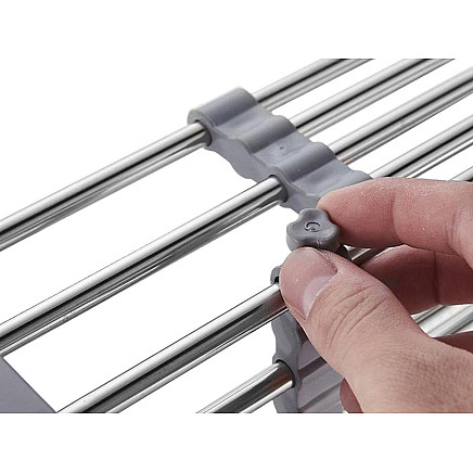 Телескопическая конструкция позволяет подогнать его под нужный размер мойки. Корзина регулируется от 29,5 см до 44 см.