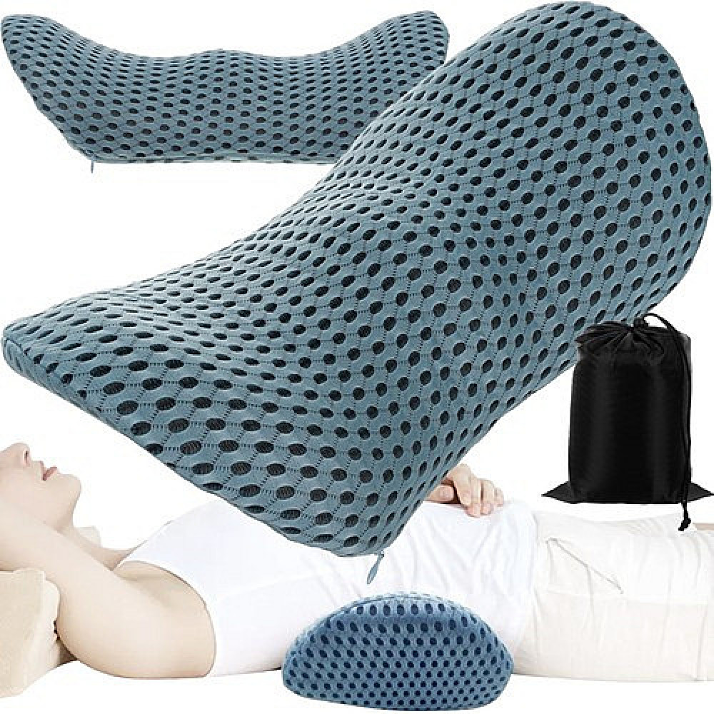 - INCREASED COMFORT WHILE WORKING AND TRAVELLING - long hours spent sitting, whether at a desk or behind the wheel, can lead to fatigue, back pain and poor posture. Memory foam lumbar orthopedic pillow significantly improves the comfort of sitting work and long car journeys . Memory foam provides gentle lumbar support , reducing pressure on the lumbar spine , and also supports the correct alignment of the spine , which promotes better circulation and reduces muscle tension. This is an excellent solution for people who spend many hours in a sitting position , eliminating the feeling of discomfort and improving the ergonomics of everyday activities.